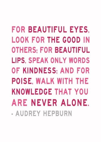 Any woman , worth her salt, knows that the late great Audrey Hepburn was a woman that we should all emulate . She was classy , sassy, charming, and beautiful without trying. She took what God gave her and she made it work. Talk about a role model. She had the reputation of being a humble, kind and charming person, who lived the philosophy of putting others before herself. (Much like us Mommies…always putting our children first). We’re all just a bitching bunch of Holly Golightly’s. I recently came across some of Ms. Hepburn’s quotes that I simply must share with all of you dahhlings:) Here goes. Write them down, believe them, live them, love them…enjoy.