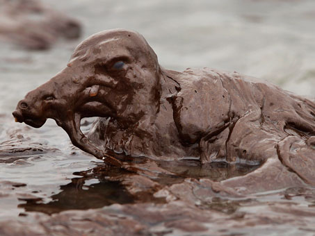 Disclaimer: I couldn’t find that many photos apparently BP has put a gag order on the press and no one is allowed to take pictures of the animals washing up on the shore..something about their reputation.Right., because that’s still in tact.